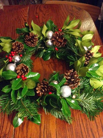 So with all these decorations and with an already full tree, I decided to string them up for a stairway garland.